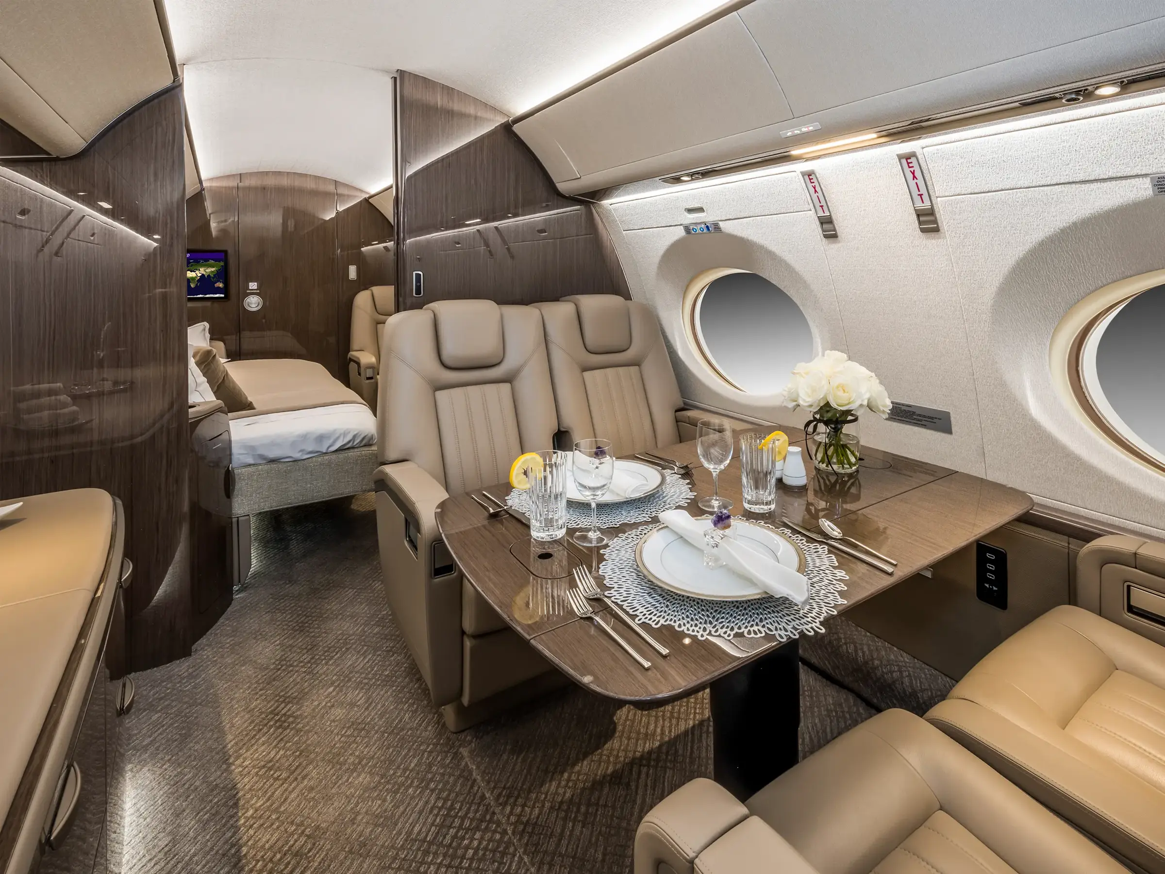 The Gulfstream G500 is a modern large-cabin business jet with a 5,300-mile range and a top speed of Mach 0.925, combining long legs with high performance. Its cabin seats up to 19 passengers, offering Gulfstream’s signature oval windows, low cabin altitude, and advanced Symmetry Flight Deck with touchscreen avionics.